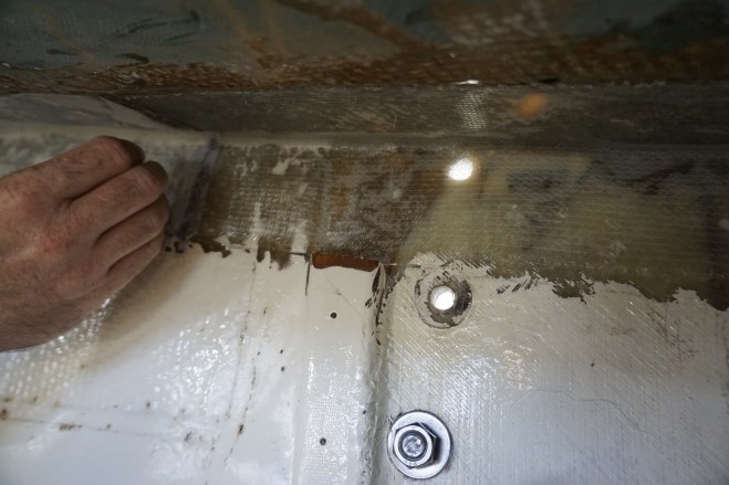 Previous ImageNext Image Finished fiberglass Removing peel ply on the hull to deck joint fiberglass Share this: Share on X (Opens in new window) X Share on Facebook (Opens in new window) Facebook Like Loading...