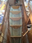 The next day we built steadily. We built the new base of the anchor locker lower by going 6 inches into the bilge. The aft bulkhead of the locker was transformed, from an obstacle into a 14 inch high step.