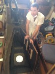 Brian climbs into the v-berth